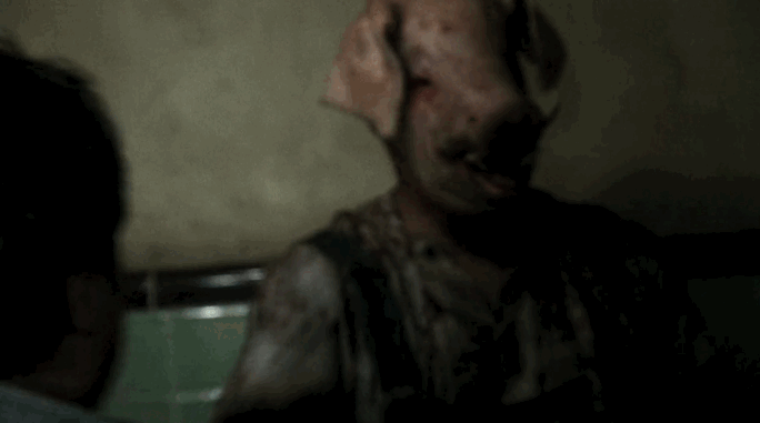 Though it has not clicked to Matt quite yet, Shelby is well-aware that there is something very wrong with the house. In an attempt to escape, Shelby flees, taking Matt's car and speeds away. Within a matter of minutes, Shelby ends up hitting a pedestrian head-on, panicking and getting out of her car to check on the person who just flew across the hood of the car. She realizes that it is a woman, and follows her through the woods to check on her, but Shelby loses sight of the woman, as well as the road. She ends up getting lost in the forest, incapable of finding her way back to the car. The episode then ends with Shelby being surrounded by a mob of raggedy people, covered in blood and dirt and wearing old clothes.