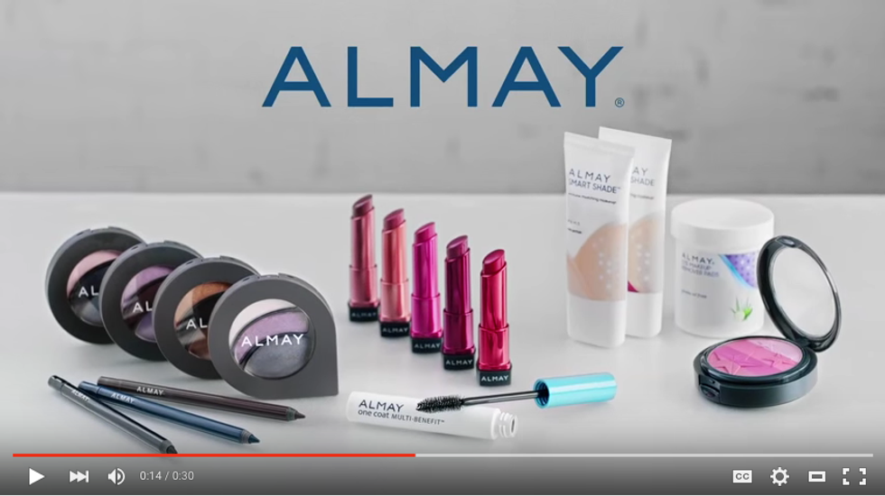For years, Almay has been attacked and challenged by not having foundation colors that fit anyone beyond a subtle tan on a white woman. But within this ad, there is a shot of some of the products. One of which is the ‘Smart Shade’ skin tone matching makeup, as it claims. In the ad, the two shades placed with the other makeup don’t look anything darker than beige.