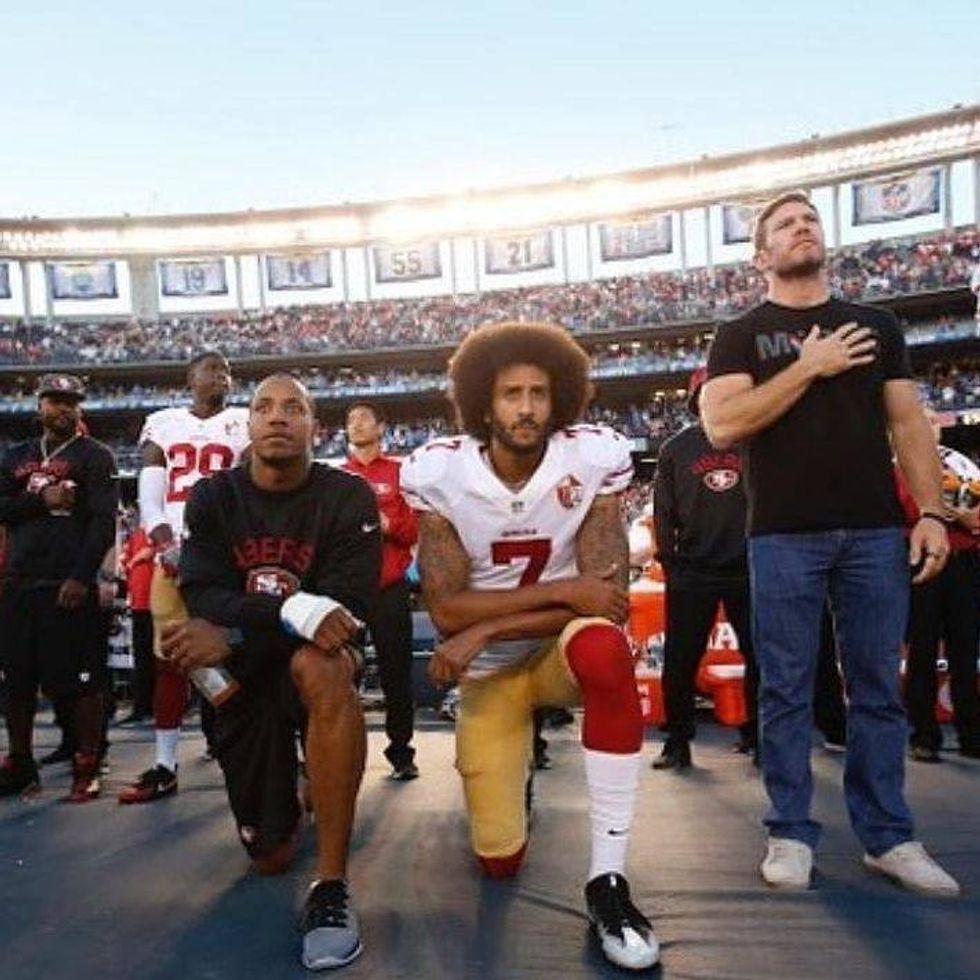 Colin Kaepernick’s political stance is the the story of the week. The 49ers quarterback has instigated a national conversation regarding race in America. He did so by sitting when thousands stood during the national anthem pregame ceremony last Saturday, August 27 against the Green Bay Packers.