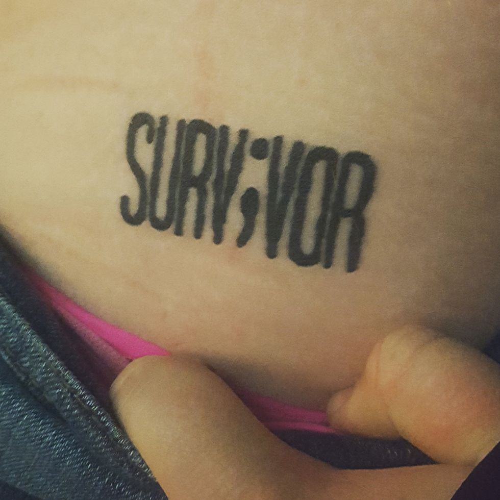 My battle with depression and self-harm started at 13 years old after I endured several deaths of those close to me and experienced a sexual assault. The battle raged on in the dark for several years. Several years later I found myself in an abusive relationship and the monsters in my head began to take over once more. At 20 years old I came across The Semicolon Project, and began reading the stories of thousands of other people who had been experiencing the same difficulties I had been for almost a decade. I didn't know any of them on a personal level, but I instantly knew I wasn't alone in feeling lost, depressed, and like I didn't want to be here anymore. Suddenly, it felt like I could breathe a little easier, and finally move forward one step at a time. Reading other's stories and believing in this movement helped empower me to get better. A little over a year ago I joined your movement by permanently inking a semicolon on my hip over the majority of my scars.