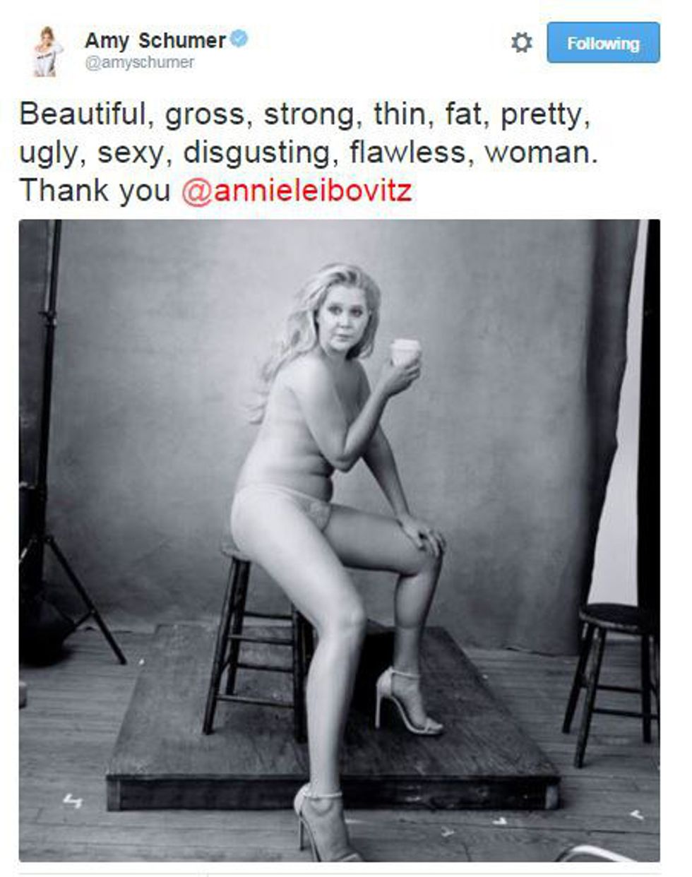 Vulgar. Overweight. Over the line. Disgusting. Dirty. These are just some of the ways that Amy Schumer is described as in the media. Surprisingly, she embraces these words that are used against her. She doesn't let the media put her down because she embraces every part of herself. She best expresses this in her Glamour Awards acceptance speech when she states, "No, I'm not going to apologize for who I am and I’m going to love the skin that I’m in and not be like striving for some other version of myself." This just shows how she knows who she is and is completely comfortable in every side of her. She is inspirational with her attitude that she is unwilling to change herself so that she will be accepted by society.