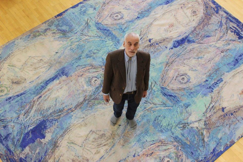 You let it speak to you before you are told about it: the art hanging every inch of each wall in the studio. The colors dull but nonetheless eye-catching. The smell of dust from a room with one window and a door, neither of them opened, gives a feeling you know you are somewhere there is a story to be told. Before you meet the maker, you meet the art.