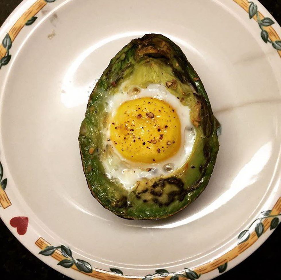 Cut an avocado in half, crack an egg in the middle and bake it in the oven for a high fat/protein breakfast that is guaranteed to keep you going all day.