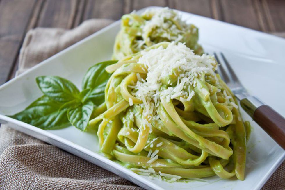Avocado makes for a great pasta sauce, add olive oil, parmesan, garlic, basil, and lemon; you get a green version of alfredo sauce!
