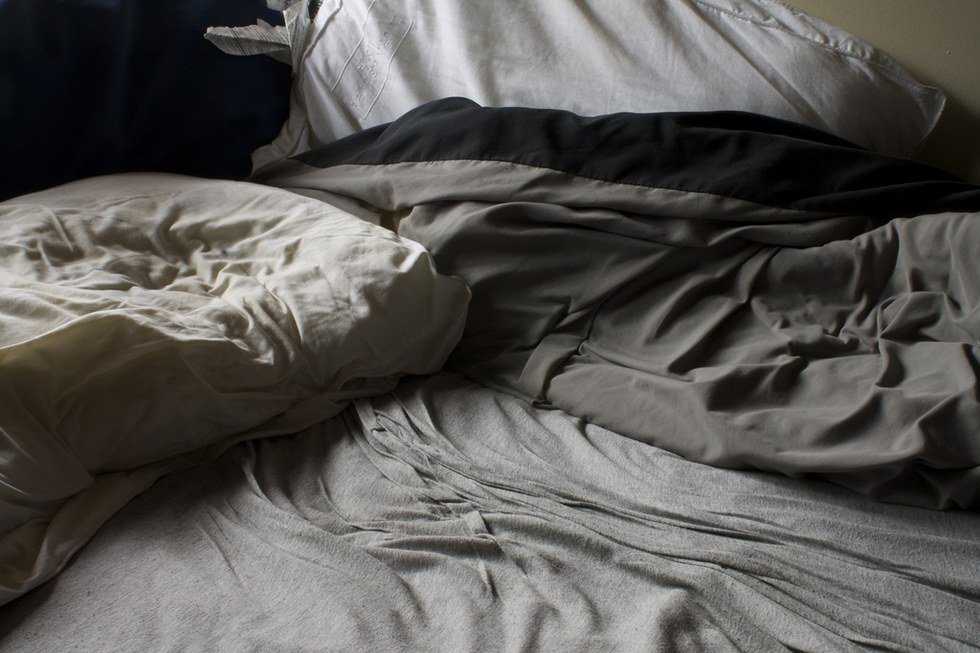 discarded on a bedroom floor.