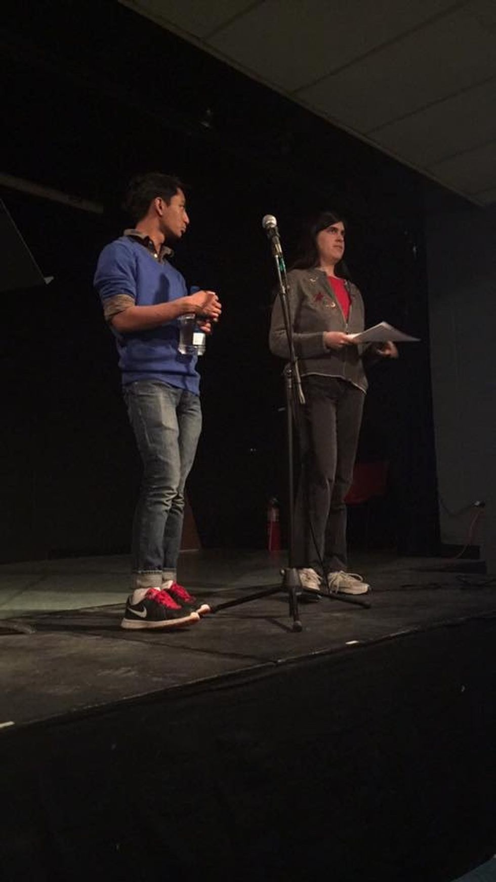 Last Tuesday, as the Feminist Union’s Events Chair, I co-hosted the Spring 2016 edition of this biannual arts showcase. At my side was the charismatic Vivian Medithi, the Feminist Union’s Social Media Chair, and together we introduced twelve poets, essayists, and visual artists to the attending crowd. This was my third time organizing Feminist Voices (which mainly involves contacting Public Space One, looking over artist submissions, and sharing the Facebook event over and over and over), and I’ve yet to grow tired of it. I simply adore this event and love bringing it back semester after semester.
