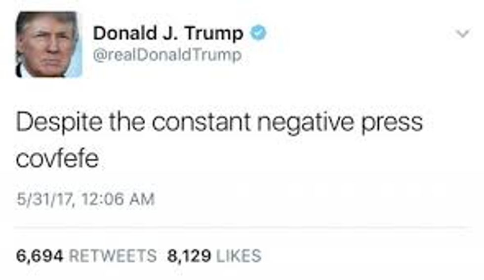 It was the tweet seen around the world that liberal political analysts just couldn't get enough of this past week. Speculation was that President Trump should have the decency to spell check if he is going to tweet. Well here you go, uneducated liberals, I did some digging and "Covfefe" is actually from the bible translating to "in the end we win". Meaning even though the fake news keeps reporting, in the end good rises above.