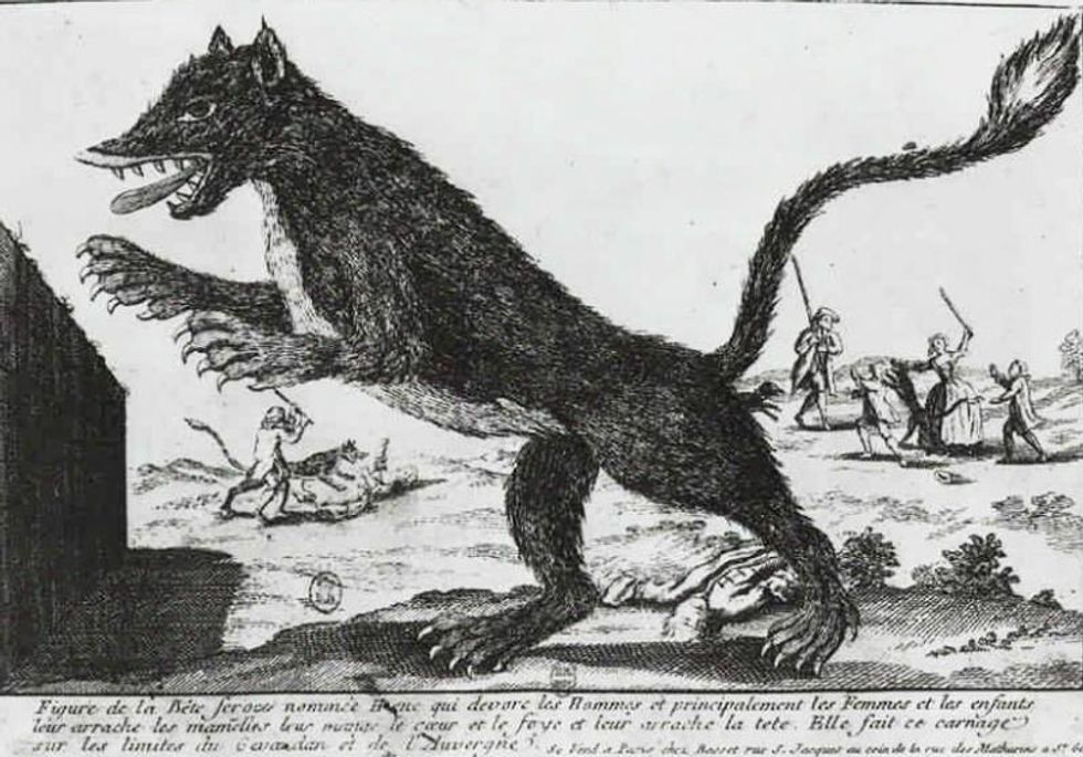 In the district of Gevaudan in the south of France, an inexpiable beast ran amok (AMOK! Amok amok amok amok amok amok!!!!) in the mid-1700’s. Believed to have killed over 100 people, it is reported that the beast was four times the size of a horse, had the snout of a greyhound or a pig, short ears that stood up like horns, a wide chest, a huge head and neck, and varying accounts of fur with patterns of white, red, and black. Several tried to kill it to no avail, but word of the creature soon reached the royal court at Versailles where King Louis XV sent one of his hunters who managed to kill the beast with a silver bullet. And while the Beast of Gevaudan may not be your typical werewolf story, the beast’s corpse was taken back to Versailles where it was put on display for the royal court.