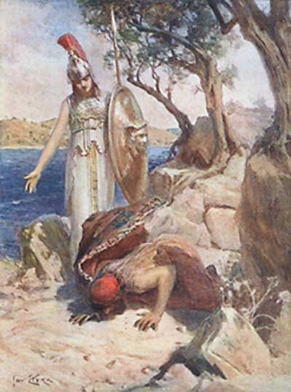 Odysseus on Scheria: Odysseus was shipwrecked on the welcoming island of Scheria by Athena so he could finally return home.