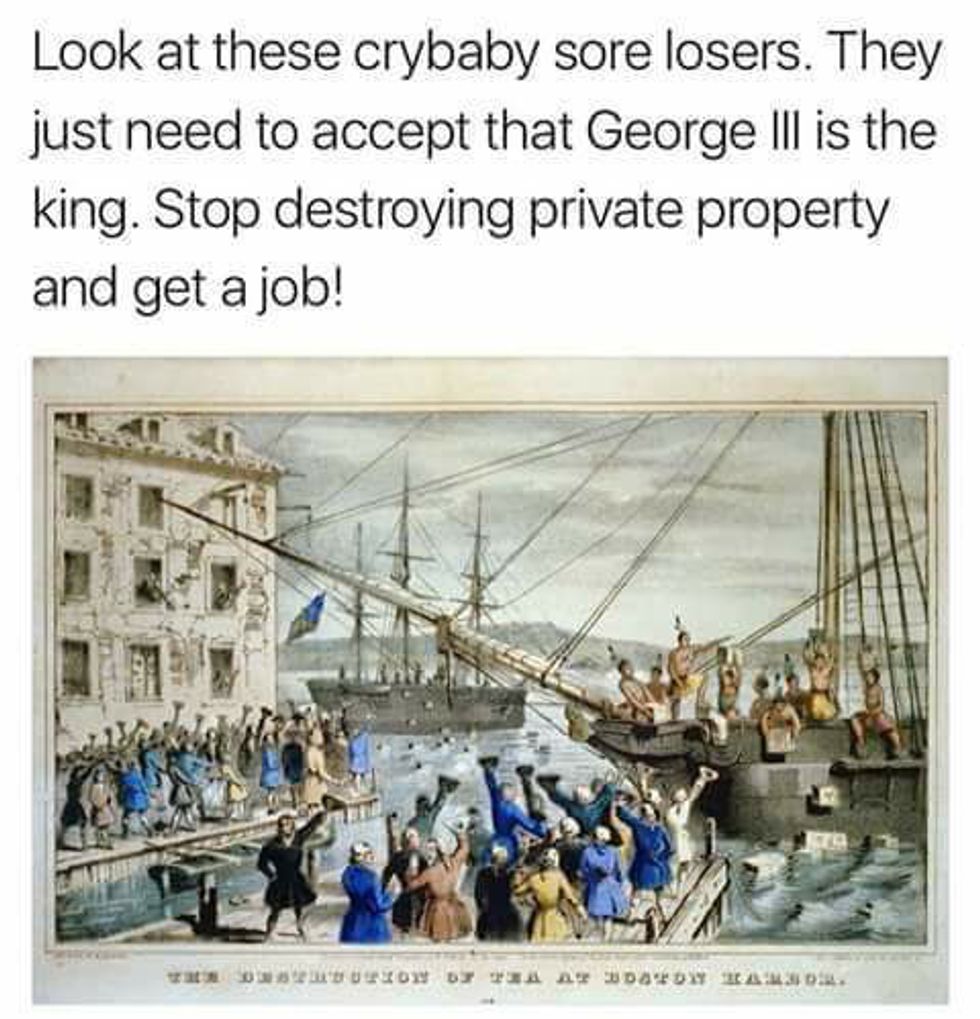 Recently, a friend posted the following meme about the Boston Tea Party on Facebook after the presidential inauguration: