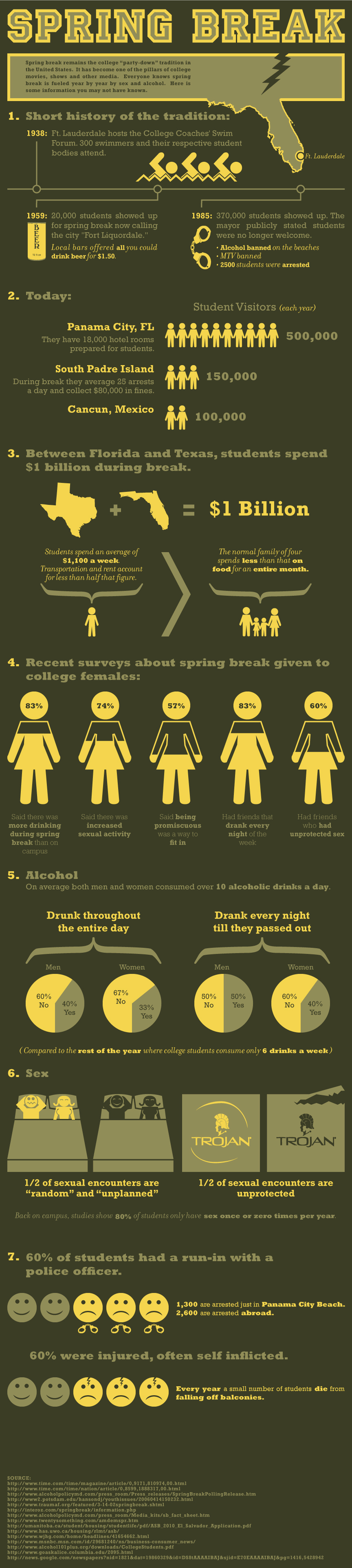 In 2013, 57 percent of female college students polled believed that in order to fit in during spring break they had to be promiscuous. 60 percent had friends who had unprotected sex.