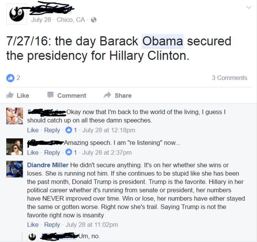 It appears right now that people have not learned their lesson. They are blaming James Comey, third parties, and sexism for Hillary losing. Well, Hillary would have still lost in the swing states she lost if the number of third party voters that said they would vote for her in a two party race voted for her. It wasn't sexism. Fewer women voted for Hillary Clinton and a lower percentage of women voted for Hillary Clinton than Barack Obama. Had the amount of women who voted for Obama voted for Hillary, the results may have been different. Don't blame James Comey because you should have never been behind a candidate with an FBI investigation. You should have demanded she stepped down. You didn't treat Donald Trump as an emergency. You treated him as a joke. You said he had no chance of winning and laughed at anyone who said he would. If you do not learn from what you did this election cycle, no matter how bad Donald Trump will be, he will be our president again in 2020. I'm here and I'm ready to fight. No plans on moving to Canada. What will you do?