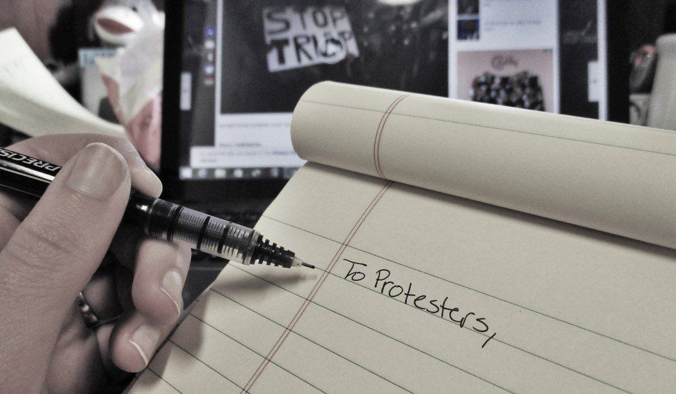 We hear you. The public hears and understands that you do not like the results of this election. We hear the outcries of "Not my President." We have read about the fires you started, the police cars damaged, and the number of people wounded. We hear you, but will you listen just for a moment? There is something you need to know: Your views matter. Whether you voted for Hillary or an independent party, or maybe you didn't vote at all, and you are against President Trump, his values, and his moral platform, you matter. Your voice matters. You have a right to be heard. Another necessary point to be made: You are going about this the wrong way. Damaging cities, hurting people, screaming profanity - none of it will help you get your point across. The United States does not deserve to be destroyed and broken down by chaos and recklessness. Now that you know these two important things, I encourage to use your voice in a way that works. How did this election become so publicized? It did so by the use of media. Social and news media are your tools to getting your points across. Articles, videos, and petitions are your weapons of change. In order to inspire change, you have to speak the language of those doing the changing. Last I checked, the government doesn't communicate through anarchy. You next should choose what you would like to be changed.