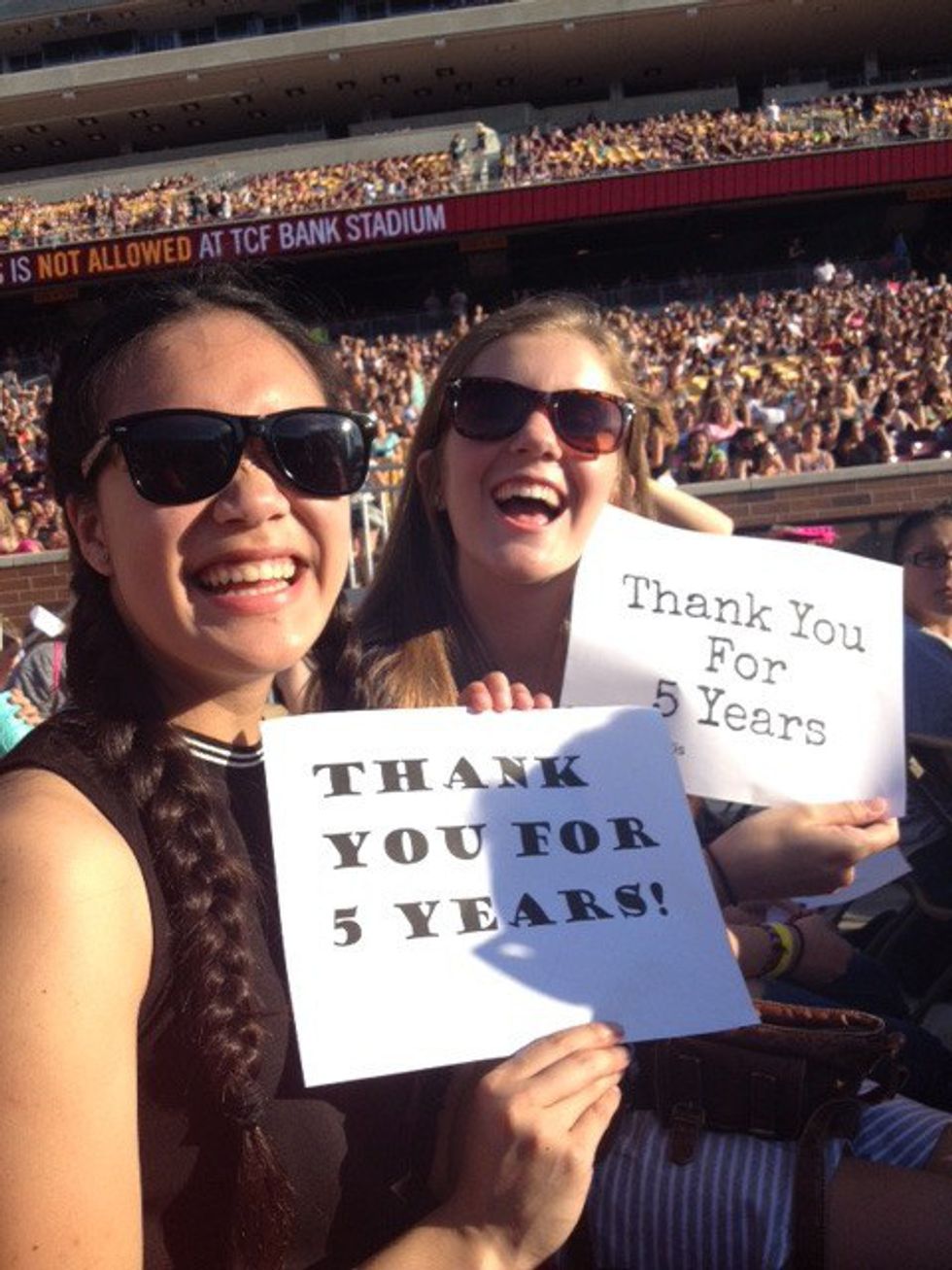 The summer before my sophomore year I had the opportunity to watch you boys live on tour. I had the pleasure to watch you guys at the Target Center in a suite! I was surrounded by some of my fellow Directioner friends, and I have these pals because you created a bond that can’t be broken. That night we laughed, sang and cried and had the best night ever.