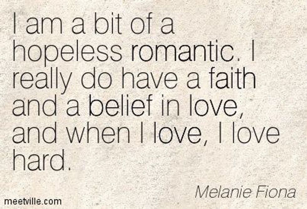 Many people, however, are opposite of the hopeless romantic. They believe that one must focus on reality and that this idea of wishing for a world-wind romance is absurd and distracting. I disagree with this because for the hopeless romantics out there similar to me, there are certain qualities we possess. They are qualities that benefit us and mold us into the people we are.
