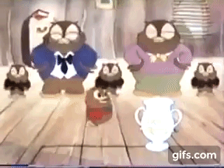 GIF of Owl Jolson and his family singing and dancing to "I Love to Singa."