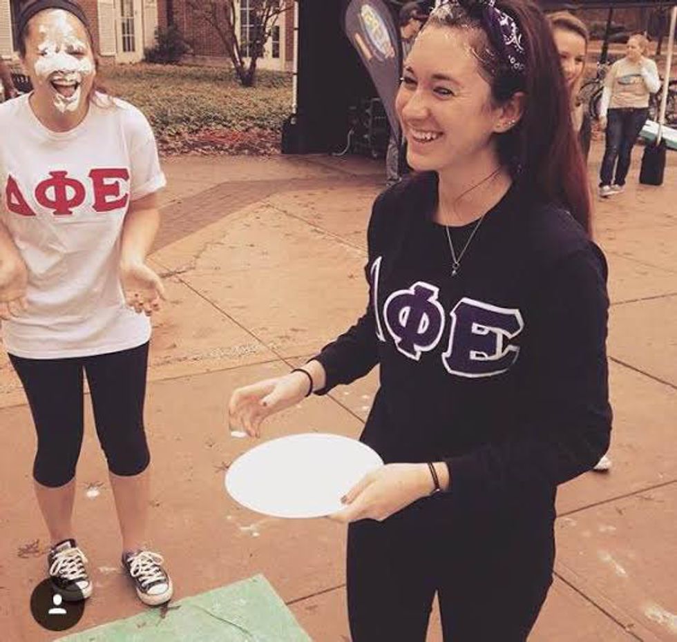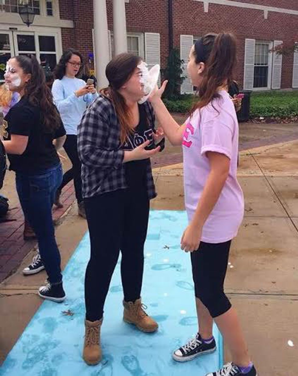 On Thursday we held #TellSomeoneThursday. Many people suffering with eating disorders downplay the seriousness of the disorder and don’t tell anyone about it. This only worsens the problem. We encourage people to find the motivation to talk about their disorders. And if you have a friend who opens up to you, don’t run away or blow it off- be accepting. Encourage healthy habits and positive thinking. We used this day to do a fun event called “Pie a Deepher” where students were allowed to pie sisters of Delta Phi Epsilon for three dollars. This money was used for ANAD and the event also helped spread positivity on campus!