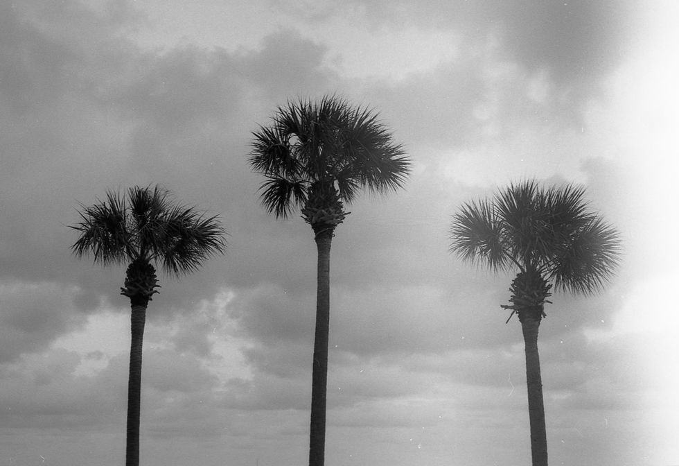 This photo really shows off the film aesthetic. I left the dust and debris that scanned from the negative in the shot. There is no post-production, and it shows off the latitude of film. I love the blown out corner, and I shot this a hair underexposed intentionally hoping to get the silhouetted palms while still maintaining the blown out sun that I shot right outside the frame lines.