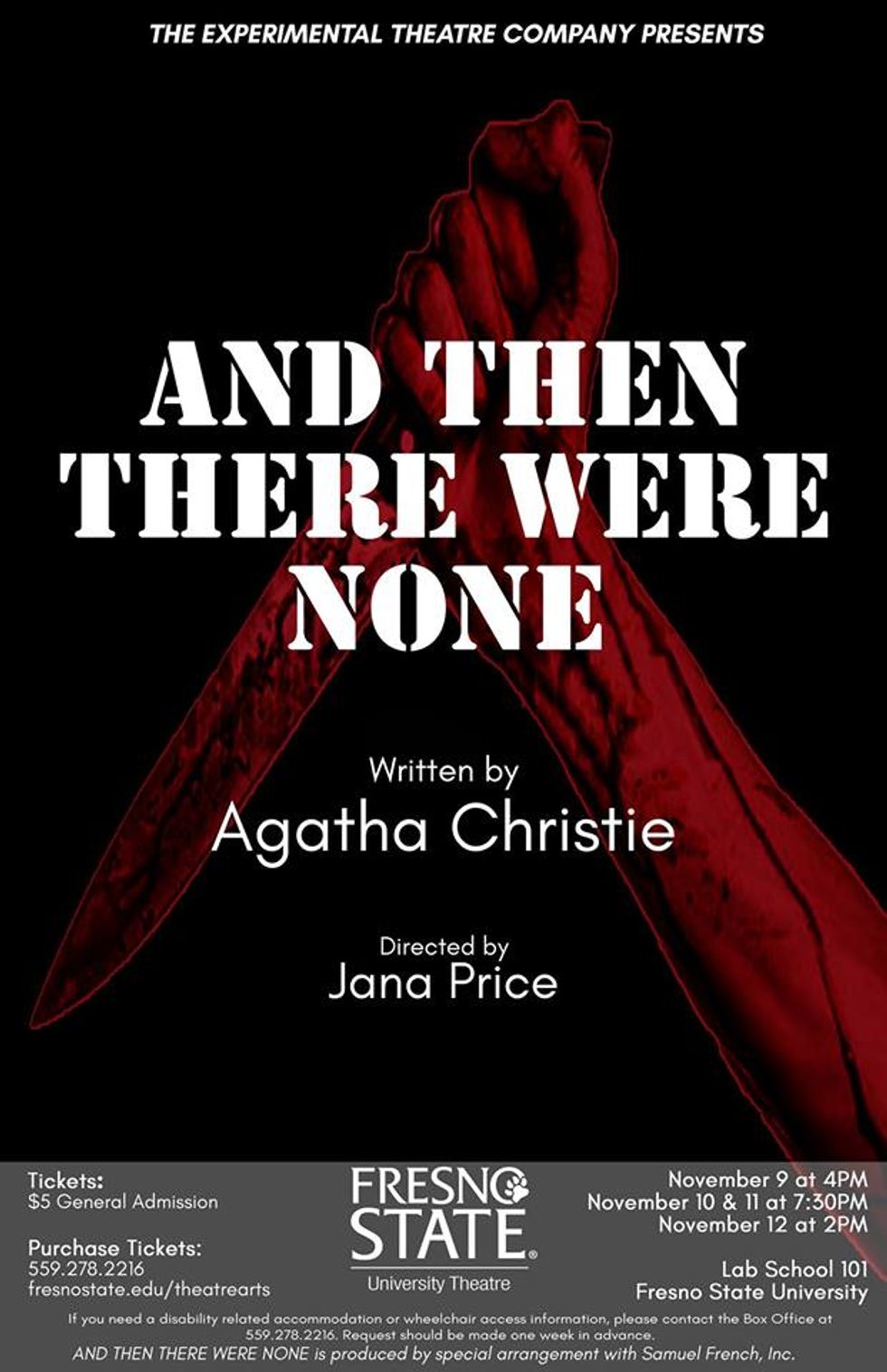 "And Then There Were None" runs at Fresno State in the Lab School 101 theatre November 9th at 4pm, November 10th at 7:30pm, November 11th at 7:30pm, and November 12th at 2pm. Tickets are avaliable at the door for $5, check out the Fresno State Theatre Department page for more information: http://www.fresnostate.edu/artshum/theatrearts/per...