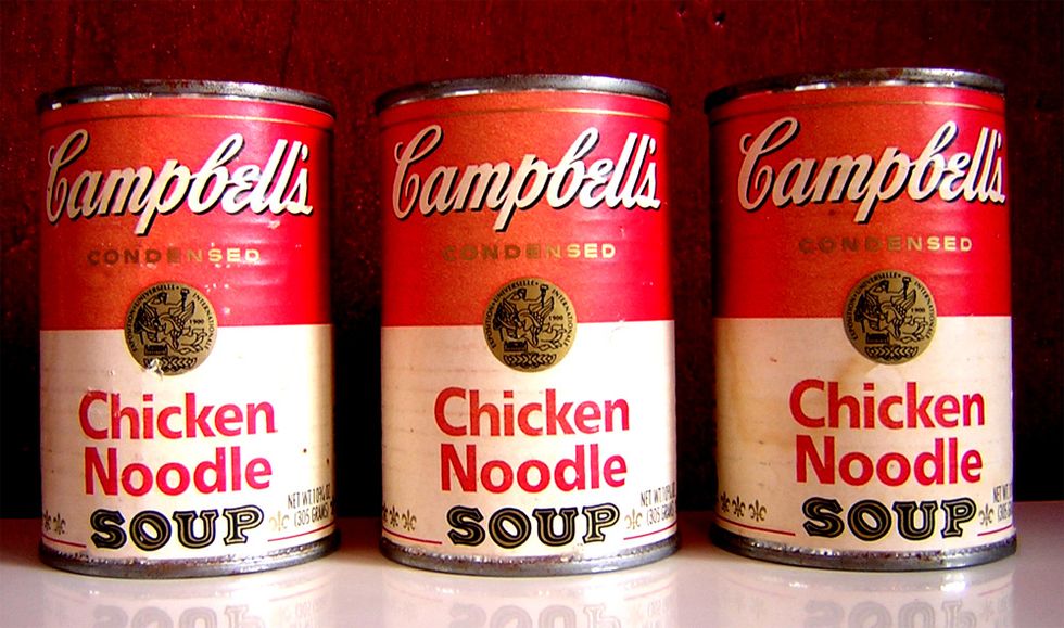 "Campbell’s Soup Cans" is a precursor to Warhol's later acclaimed style. Here, they have the look of being mass-produced from a hardworking printing machine up to its brim. But in fact, each image is hand-painted with a synthetic polymer. Warhol wanted to convey the look of them being fake to keep his vision churning.
