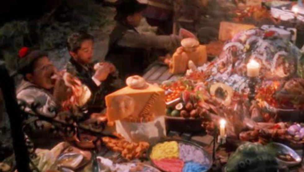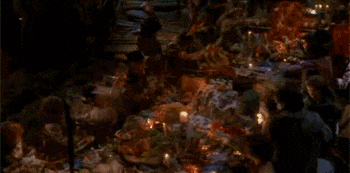 While not truly a feast in that doesn't feature characters eating an actual meal, this forever will go down as fantasy for sweet-toothed foodies. Serving as the backdrop for Gene Wilder's time-honored rendition of "Pure Imagination," the room is stated to be made entirely out of edible materials. And, as an avid chocolate milk fanatic, I want to drink from that river.