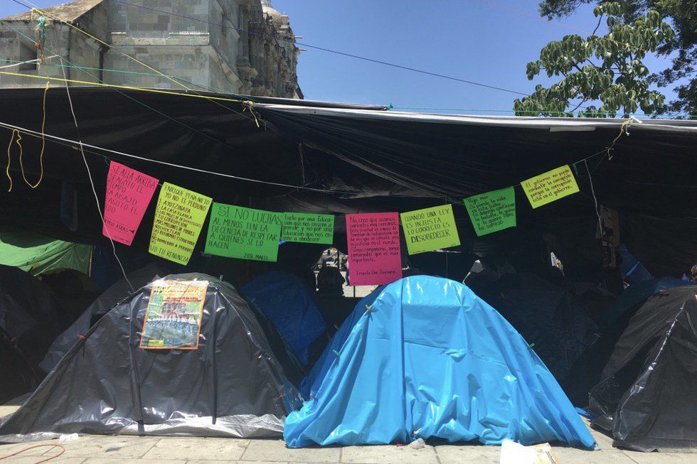 4. Since the protest, Teachers have occupied El Zocalo in Oaxaca City- a plaza in the middle of tourists markets.