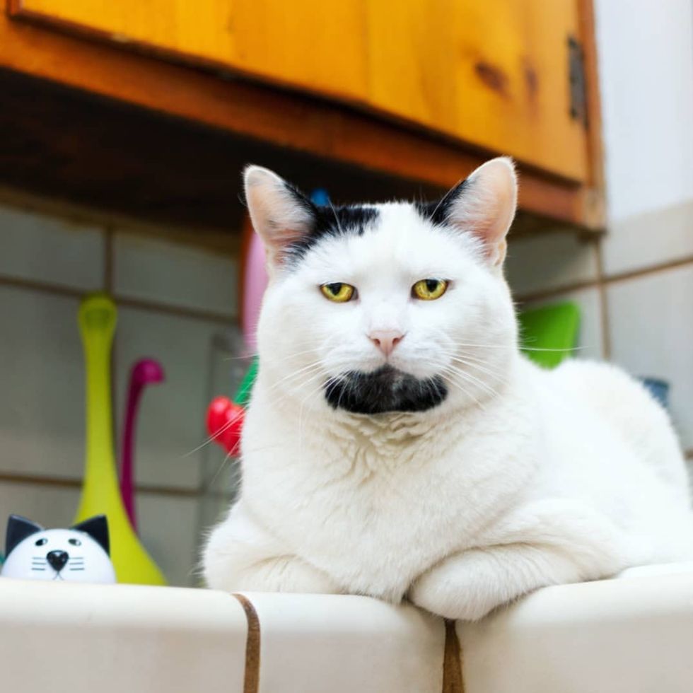 This cat is known for his unique patch of fur on his chin, that makes him look like he has a beard! This Instagram features Gary and his big family!