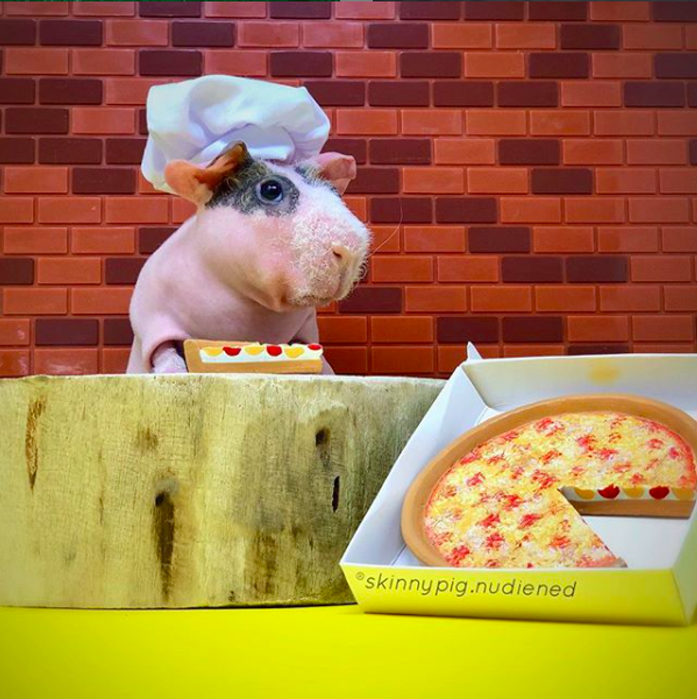 This skinny pig (hairless guinea pig), has taken Instagram by storm. His parents pose him with every prop you can think of. Every day he posts a picture recognizing the "National Day," such as National Pizza Day!