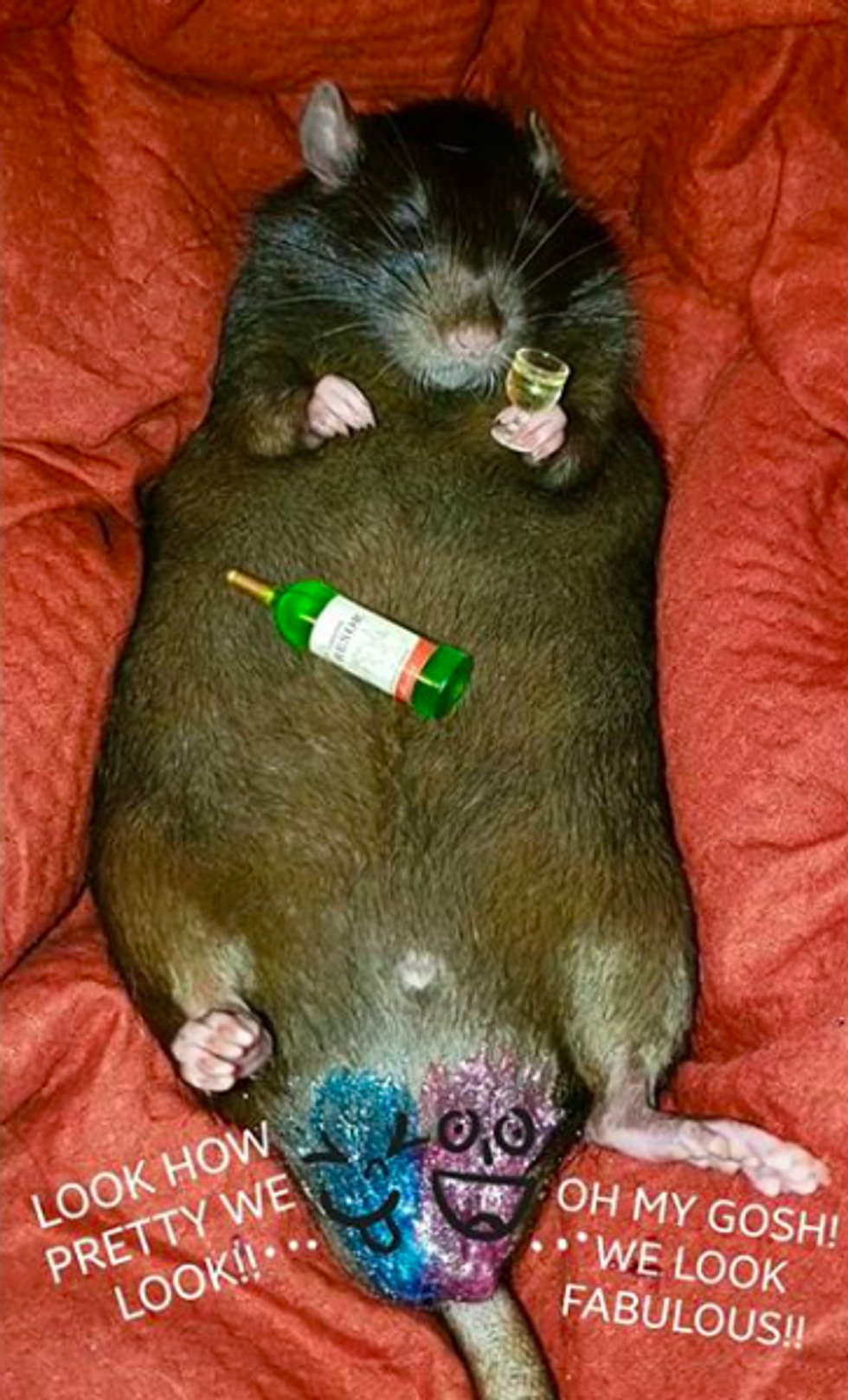 This cute little mischief (the term for a group of rats) are often posed while asleep surrounded by miniature props. Their mom is from New Zealand, and their mischief is made up of 8 rats, all with punny names.