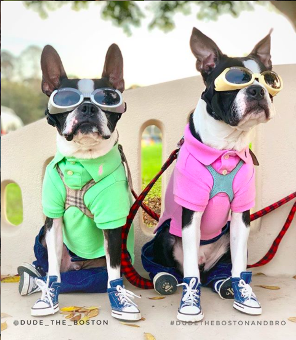 This Insta-famous dog now has a brother named Bro! Their doggy dad dresses them up head to toe in goggles, vests, and you can't forget the shoes. Their Boston Terrier smiles and fashion choices will brighten up your timeline.