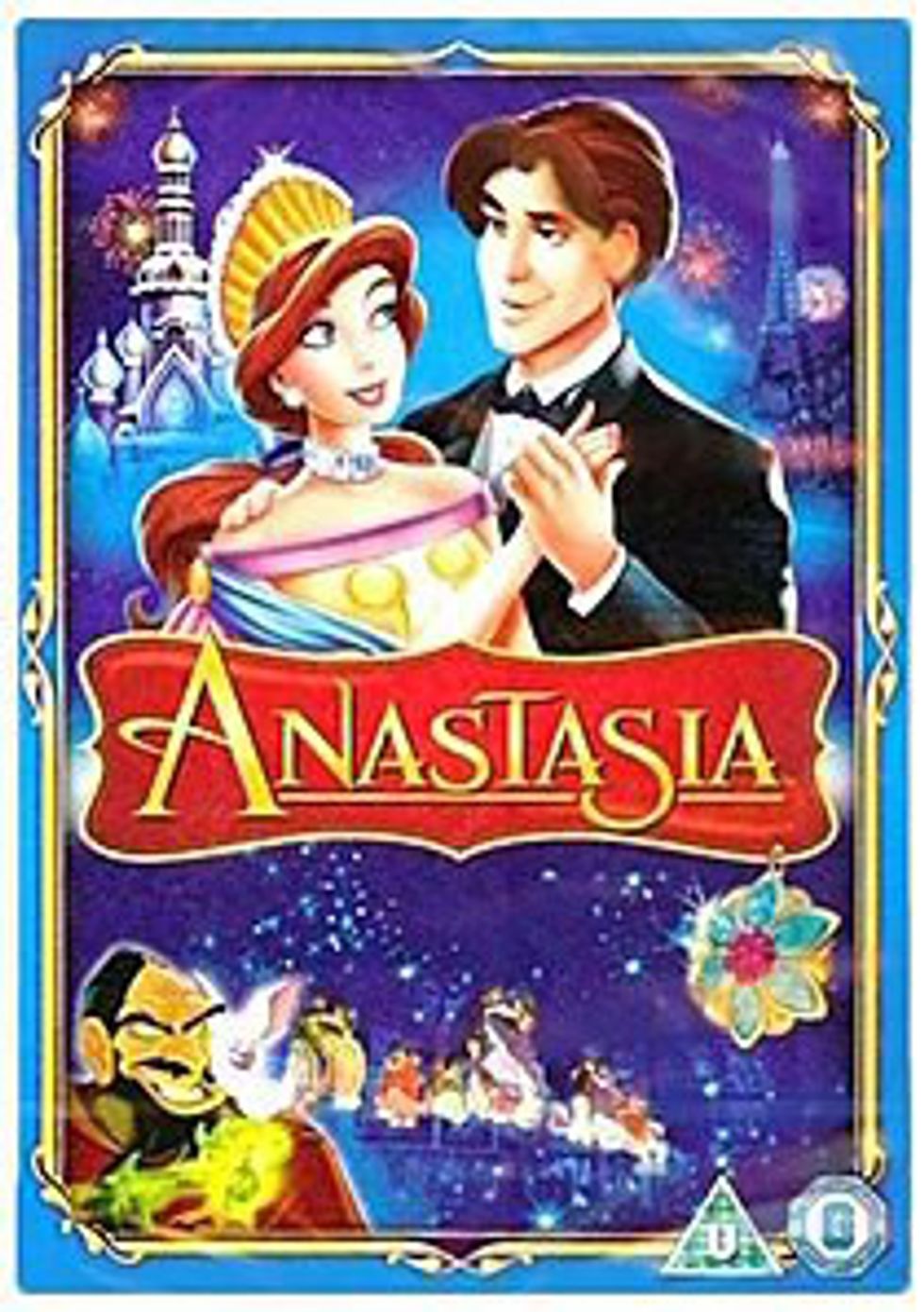 I. Love. This. Movie. End of discussion. This is the story of a young woman who is one of the remaining survivors of the Romanov family after they were killed in the Russian Revolution. She's separated from her grandmother and forced to live in an orphanage until she turns 18. From there, she (now named Anya) is sent away to live on her own and work, only to attempt going to Paris as her only clue to where her family is lies in a necklace that reads "Together in Paris". Meanwhile, con-artists, Dimitri and Vlad are attempting to find the perfect girl to pretend to be the princess Anastasia so they can claim the prize money and be deemed heroes. When they meet Anya and realize she bears a strong resemblance to the princess (noticed when she stands in front of a portrait at the old palace), they decide to humor her in her goal to make it to Paris and find her family. However, the evil Rasputin (the man who orchestrated her family's death) is actively trying to kill her as she journeys on, failing each time. After finding the grandmother and Anya passing the tests required of her, Dimitri realizes that she is the real lost princess and attempts to tell her; only for Anya to discover his plan to use her for his own gain. Long story short, they get over it, Anya is reunited with her family and Rasputin just fails.