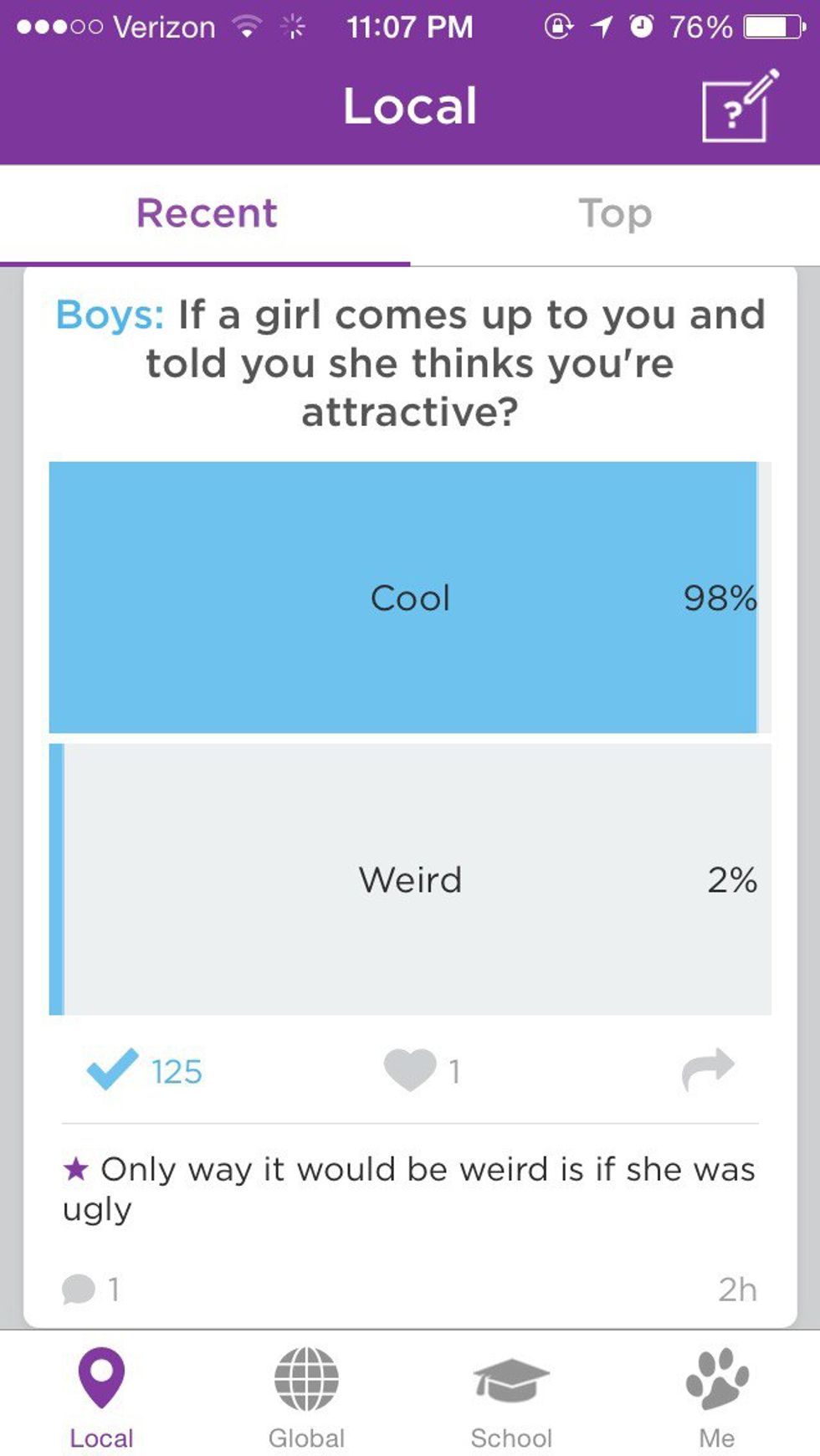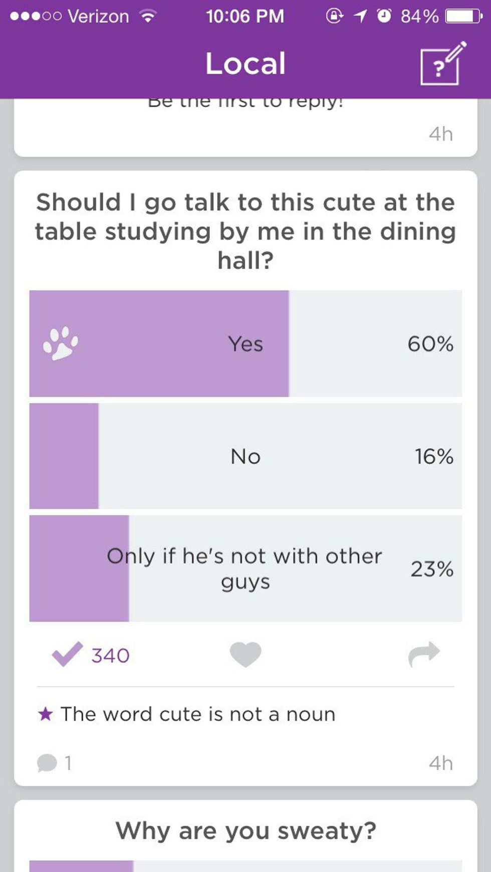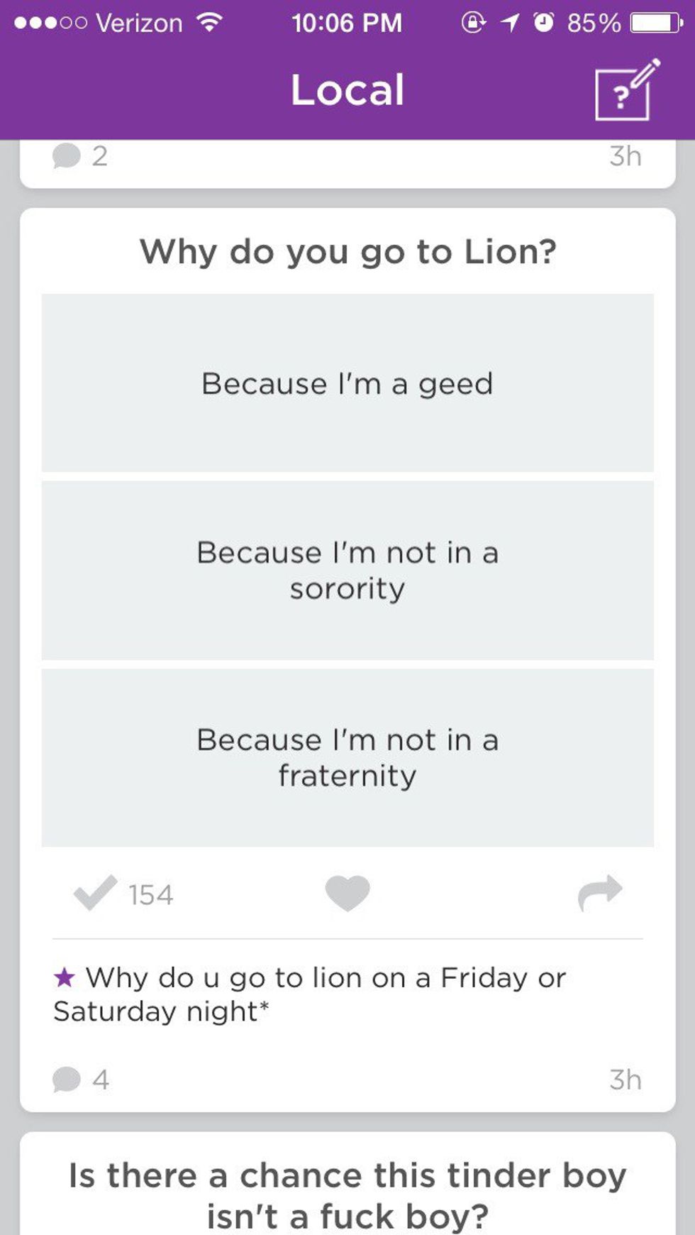 Whatsgoodly looks like a friendly polling app with the icon of a pug in sunglasses, but the use of the polls are questionable. The typical questions (on Illinois’ campus) include the ranking of sororities and fraternities, polls about individuals, sexual questions, relationship advice, and mindless humor.