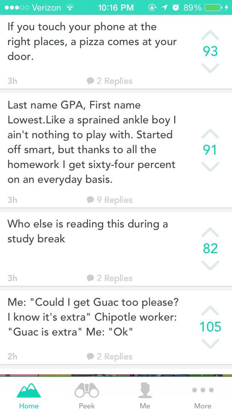 Yik Yak is a platform for one-line comedians to shine, or just to see an idiot's opinion.