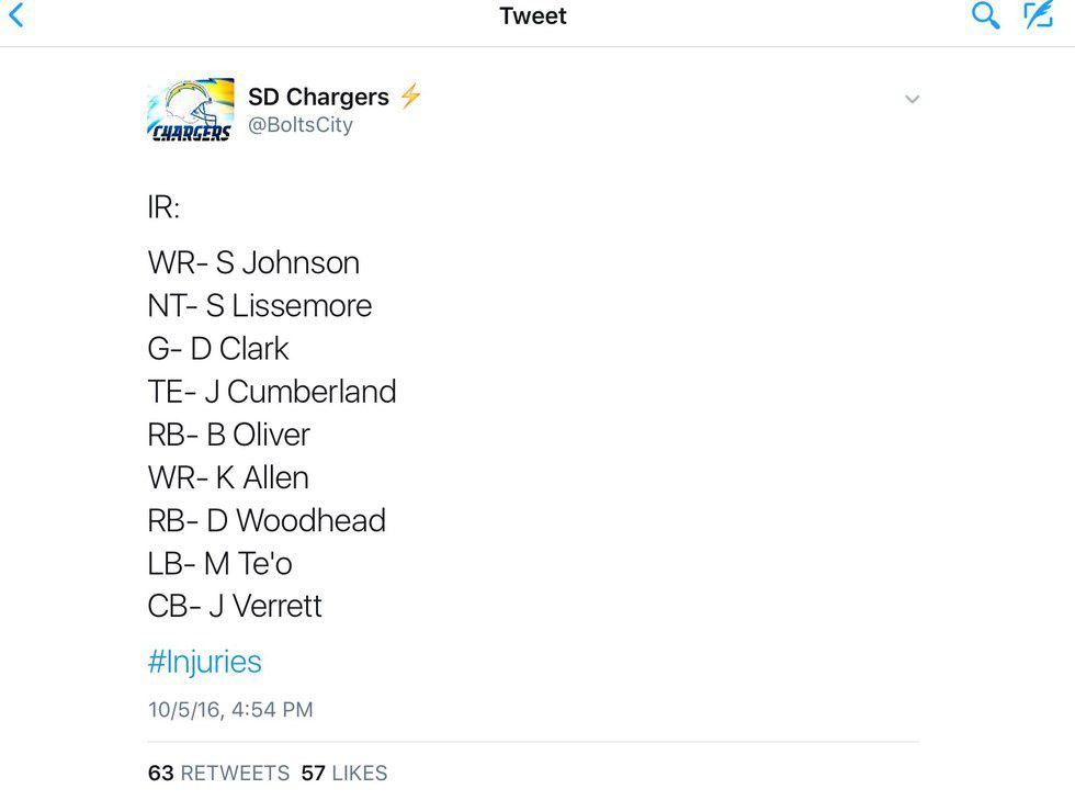 The Chargers have been infected by the injury bug this season. Even though injuries a part of football and its considered the way of life, it's a valid reason the Chargers have been pretty bad. Let's go through the list of major injuries to key players the have dealt with the season.