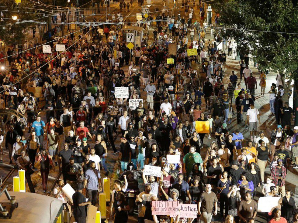 disabled black man, Keith Lamont Scott, was shot and killed by an