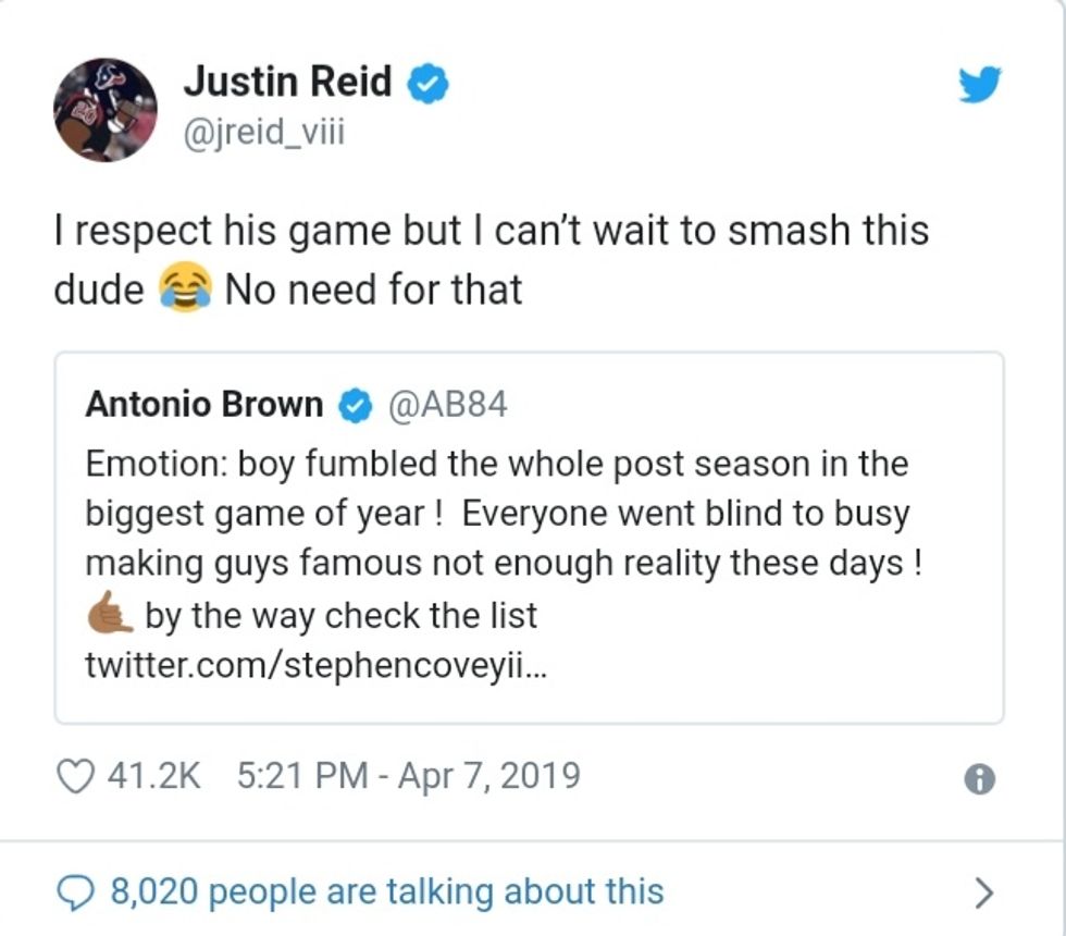 "But love your enemies, do good, and lend, expecting nothing in return." Luke 6:35, a verse that is visibly ignored to avoid contradictions for his recent actions. As we can see in the tweet thread, fans are recognizing the hypocrisy that Antonio Brown is proudly exuding and are emphasizing it. AB's repugnant attitude and "preaching" has pushed fans to see that Brown will betray anyone who attempts to take his spotlight, regardless of him making the same mistakes in past seasons. The once-beloved, former Pittsburgh WR is ready and willing to place blame on fellow teammates but will very rarely take blame for his own faults. Because of this trait and actions that have followed, Brown now has a target on his back for the 2019 season.