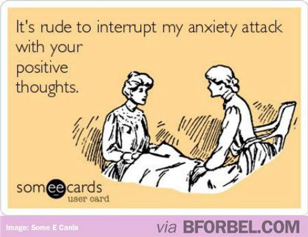 Anxiety manifests itself in many ways. Some people have general anxiety while others have social anxiety. Some people have a combination of the two. Social anxiety can be difficult, especially in college, when in order to survive one has to constantly be social. For example, when someone asks you to go to a party you immediately start to wonder if you will know anybody who is there. When you realize that you will only know one or two people, the panic sets in. You worry you may get separated from the person you know or that you may have to talk to a stranger. Situations like this happen all the time and you may end up just staying home to avoid a potential panic attack. That’s just what happens on an ordinary weekend. Think about big events like sorority or fraternity rush, joining a club, walking into a new fitness class -- and ,do not get me started about public speaking; it’s impossible.
