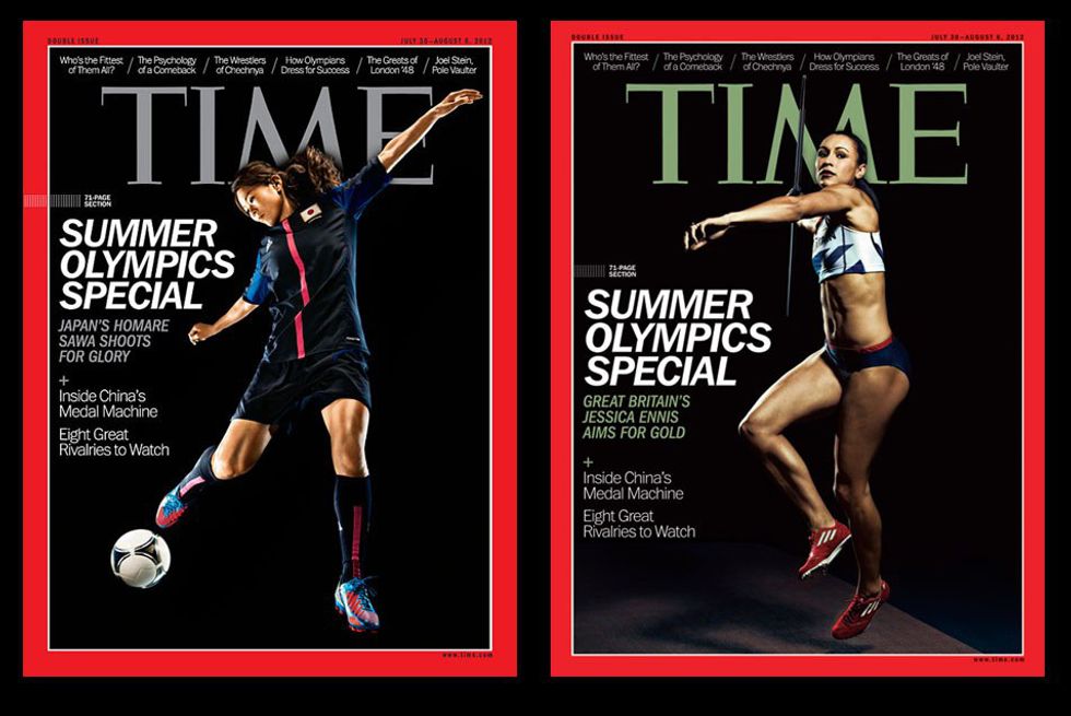 Studies have shown that when commenting about female athletes compared to males, far more emphasis is placed on appearance. As a highly popular magazine, Sports Illustrated has a monthly opportunity to change the portrayal of female athletes and shift the conversation to the skill and determination displayed by female athletes every day. Instead, they feature women on less than 5 percent of their covers (excluding the swimsuit edition) and depict the female athletes they do feature in minimal equipment and sexualized positions. In contrast, the Time covers above are action shots that emphasize the strength of the athletes shown. Instead of dedicating an issue to discussing the achievements of female athletes, they choose to devote an entire issue to the cleavage of women who do not play competitive sports.