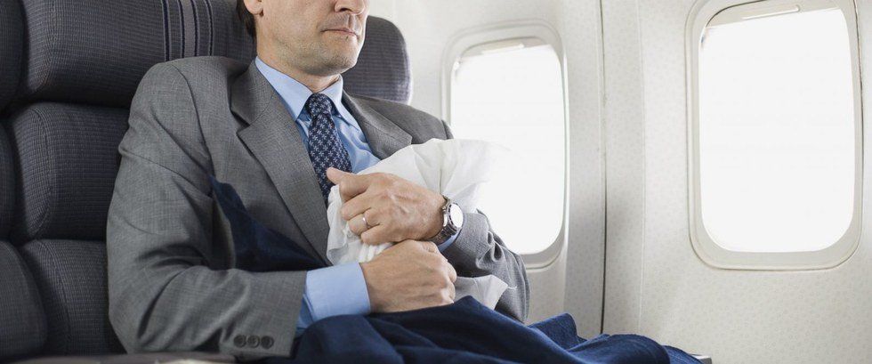 During Your Flight: If you feel a headache coming on before the day of your flight, make sure to rest and take the right medication -- flying at high altitudes can make it a lot worse. Once you're at a cruising altitude (when the plane is no longer climbing and levels out), the attendants will come around with complementary drinks and peanuts (which you're allowed to decline). They'll come back towards the end of the flight with trash bags. Longer flights may distribute towels and blankets. The seats are notoriously uncomfortable, so bring a pillow to support your neck and perhaps some earplugs. Your ears may start to feel like they're imploding at higher altitudes; just pop them now and again by plugging your nose and "exhaling" through your ears. Wind turbulence is normal -- it'll feel like the entire plane is going over a speed bump. Don't get alarmed if the pilot tells the attendants to take their seats; this is normal procedure for turbulence. Listening to music or podcasts can help keep you distracted, but make sure they're downloaded to your phone before you put it in airplane mode -- the airplane's wifi always sucks and I never trust it to do anything.