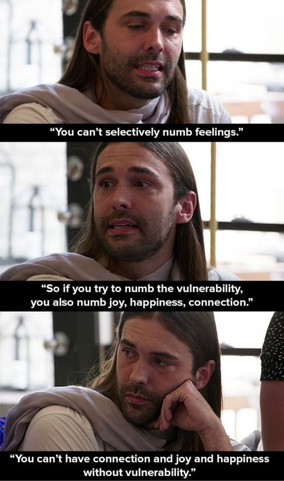 Throughout the show, the Fab Five do more than just redecorate homes and give haircuts. Whenever they help someone with a makeover, they make sure their subjects are emotionally ready for their transformations, and aim to work on their self-esteem, emotional management and more. They pry inside their minds (in a good way) in order to make sure their makeover goes farther than just skin deep.