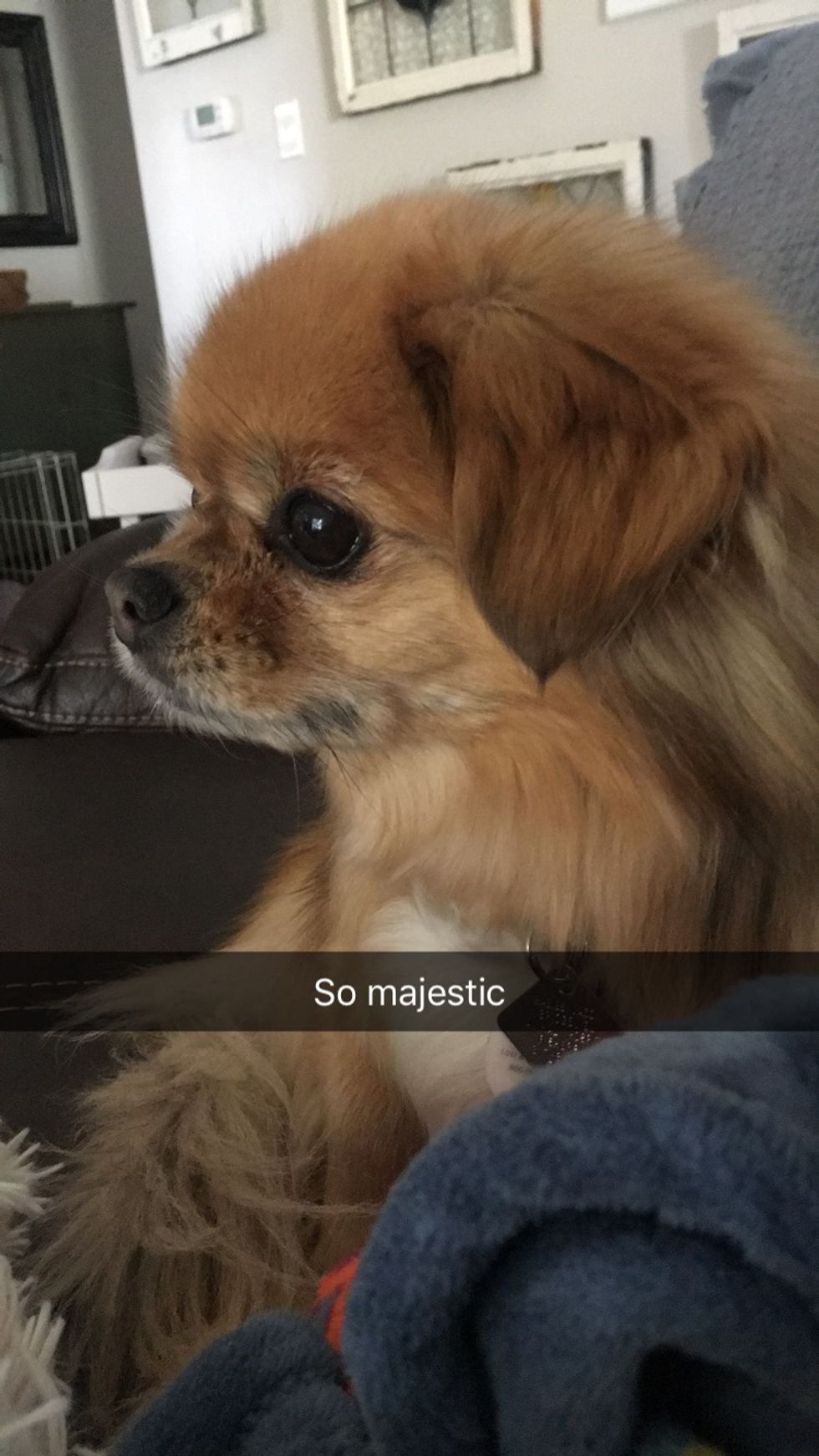 Tess is the first of the bunch and she came around in 2005, a year after my first pup passed away. A purebred Tibetan Spaniel. The adorable apple head and soft ears give her that special look. She doesn't have the biggest personality but she is loyal and acts as a mom to the rest, even the cats. She is my dad's dog the most and refuses to be without him.