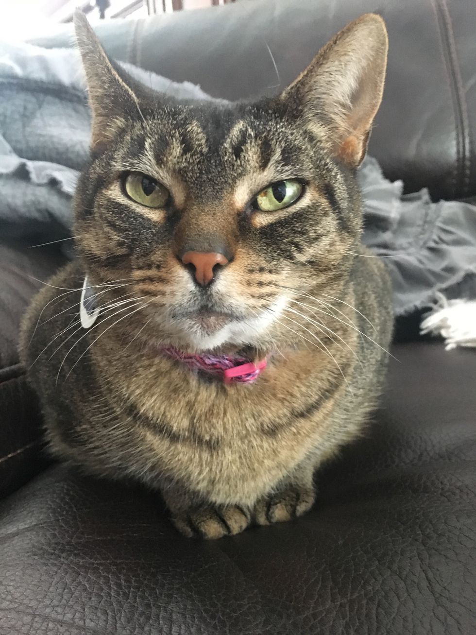 Nina was only one to two years old when we got her but she had babies and everyone adopted them but not her. I knew when I saw her, she would be mine. A Tabby with gorgeous markings, her personality is that of a kitten and mom all mixed in one. She is by my side no matter what and shows her unconditional love. She enjoys eating catnip leaves.