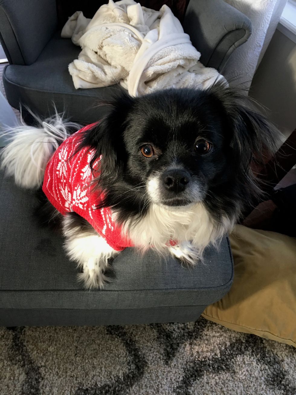 Last but not least, we have Augustus (Auggie), the first boy of the bunch, the unknown breed. A rescue as well, he has Pomeranian and in my opinion, Border Collie in him. He loves everyone he meets, wants the attention from all the ladies at the park, and looks good in a red sweater. He knows when we are sick and won't leave our side.
