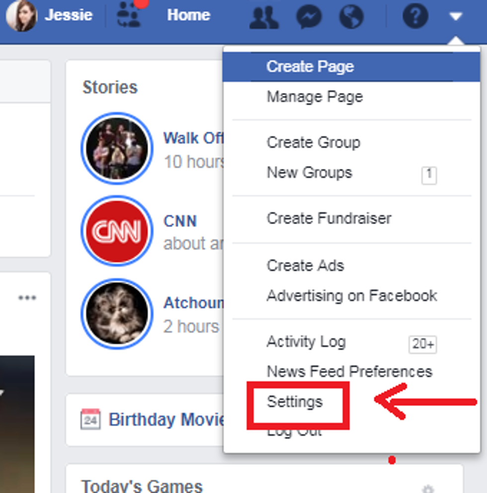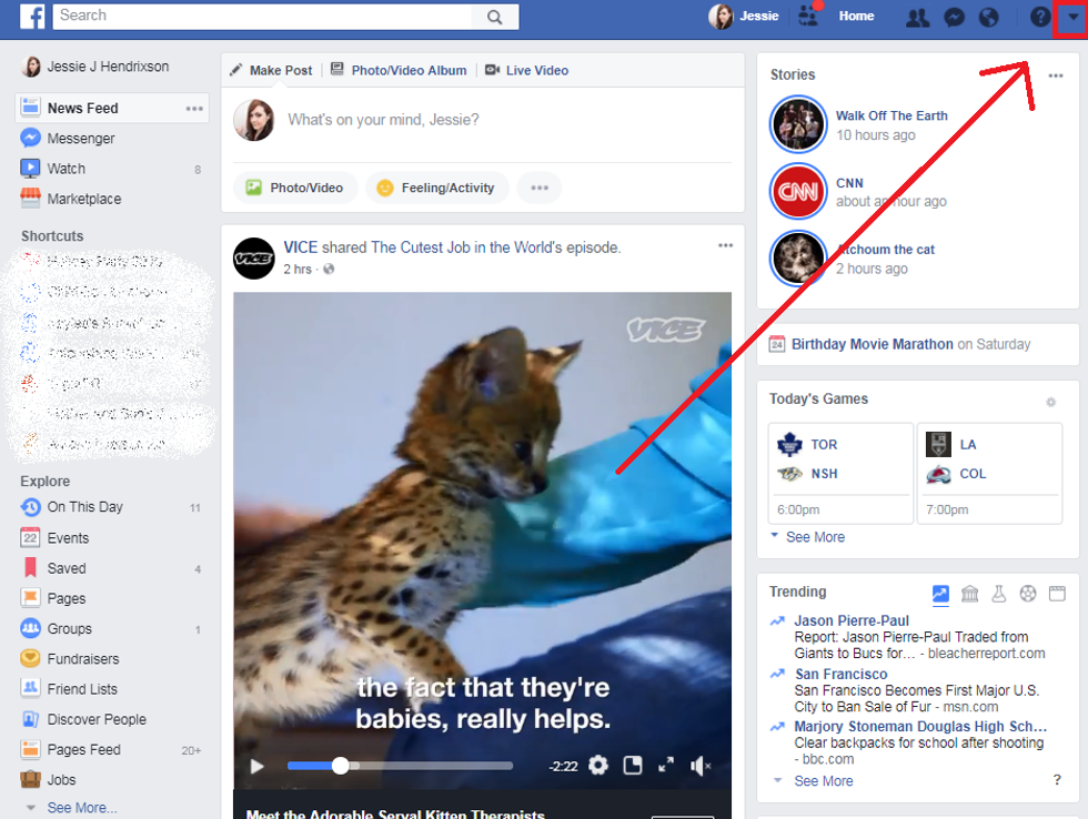 1. Log in to Facebook (obviously) and click on the arrow at the top right of the page.