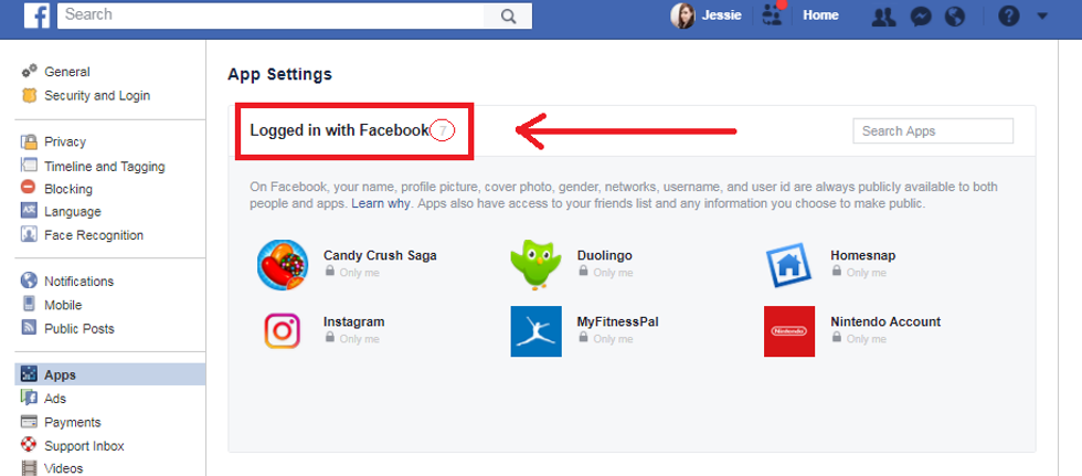 4. Scream in horror when you see the number next to "Logged in with Facebook." You'll note my number is only 7, but this is after I whittled it down from 121.