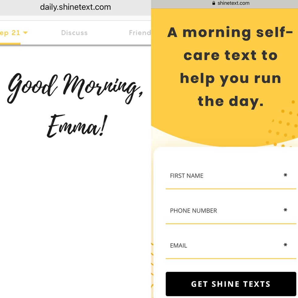 This is the cutest thing. You set up on their website or phone app and Shine will send you daily texts filled with positive messages to start your morning. You can even set the time that Shine will send you a text. Some of the texts I have gotten from Shine are "It's OK to say no to things in order to say yes to your future well being". One that I really liked was "The things you want to hear today? Say 'em loud. Even a good job, getting out of bed, Emma! can rewire your thoughts." I love the self love messages! It's a great way to start my day and I get the texts every day at 10:00am so I can see it right when I am up and about in the morning.