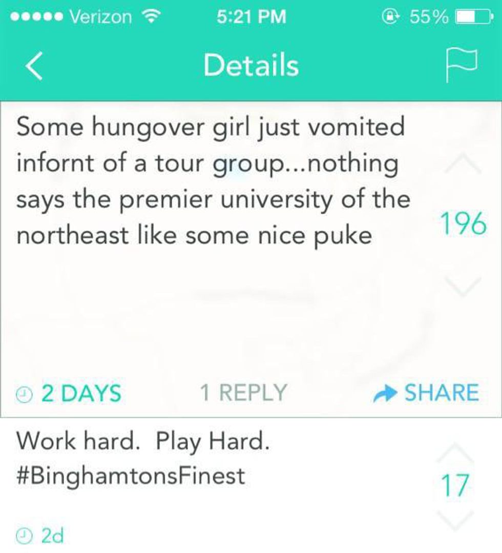 Chances are if Binghamton comes up in conversations, it’s most likely going to be followed by complaints about the school — the perpetual cold and gloomy weather, the student body largely dominated by those from NYC and Long Island, the sketchy downtown scene, Sodexo — it’s easy to pick out the flaws. It’s not so much that people don’t like the school, but that nobody expected to end up at their nearby state school located in the middle of impoverished Upstate New York. With its reputation as being everybody’s “second choice,” in addition to “where Cornell rejects go,” Binghamton is often devalued by its students.