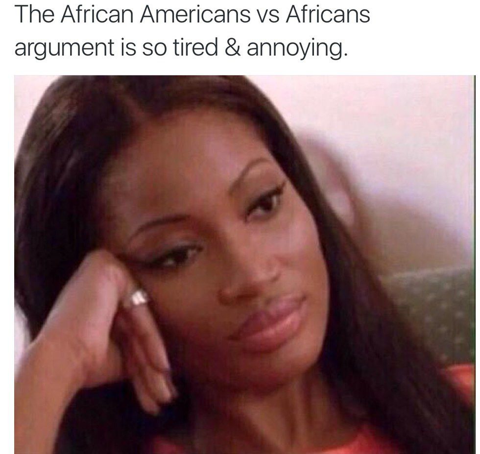 There has been a longstanding schism between Africans and Black Americans. This schism has the ability to thrive through the perpetuation of stereotypes that are spread through either community. According to Jacob Conteh's Article, "How African-Americans and African Immigrants Differ", stereotypes existing within each faction are fueled through media. These stereotypes include the misconception of Black Americans being lazy and Africans being primitive and backwards. Ridiculous notions such as these only serve to further divide people of African descent, by pinning them against each other. The sooner both people relieve they share the same ancestral blood line, the sooner the divide can begin to close.