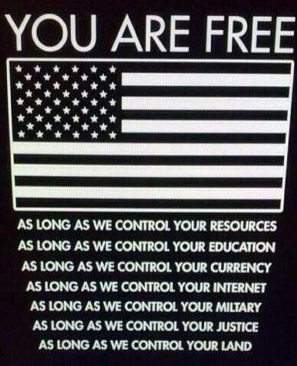 So, one more time - for the people in the back - we are not free. We are enslaved to America’s fascist government. We will not be free of this until we decide we want to be. So, go to some rallies. Support political candidates that want to end big business involvement in the government, and end the extreme taxation on the poor and start taxing the rich. My personal favorite is Bernie Sanders, but you can find your own at http://www.politics1.com/p2016.htm. Happy hunting!