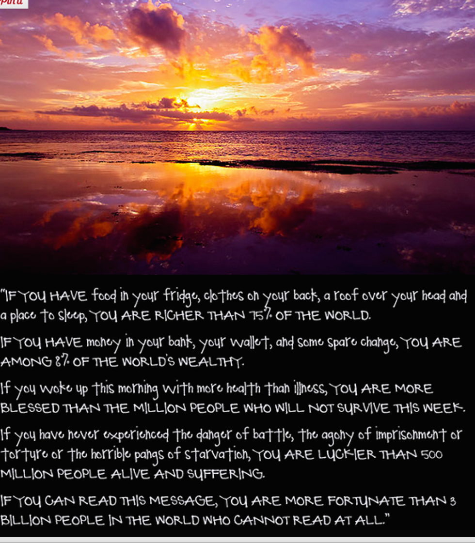 Have you ever thought to yourself what those words actually mean and the impact they can have on certain people who hear you say them? Don't get me wrong, I'm the first to squeal and say so blessed when I take that first sip of my Blue Raspberry Icee from Parker's. All I'm trying to say is before we use the term "blessed" to describe something we assume shows how "un blessed" we are, we need to realize how blessed we actually are.